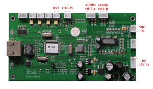 EVA-D901是一塊ARM+DSP構(gòu)架,專注于網(wǎng)絡(luò)音頻傳輸?shù)目刂颇K,具有10/100M 以太網(wǎng)接口,可通過網(wǎng)絡(luò)進(jìn)行單向MP3音頻流和雙向語音傳輸。EVA-D901可直接與外部音頻功率放大器連接,組成網(wǎng)絡(luò)音頻廣播終端。也可直接接入麥克風(fēng),利用本機(jī)的3W音頻功放,組成對講終端。